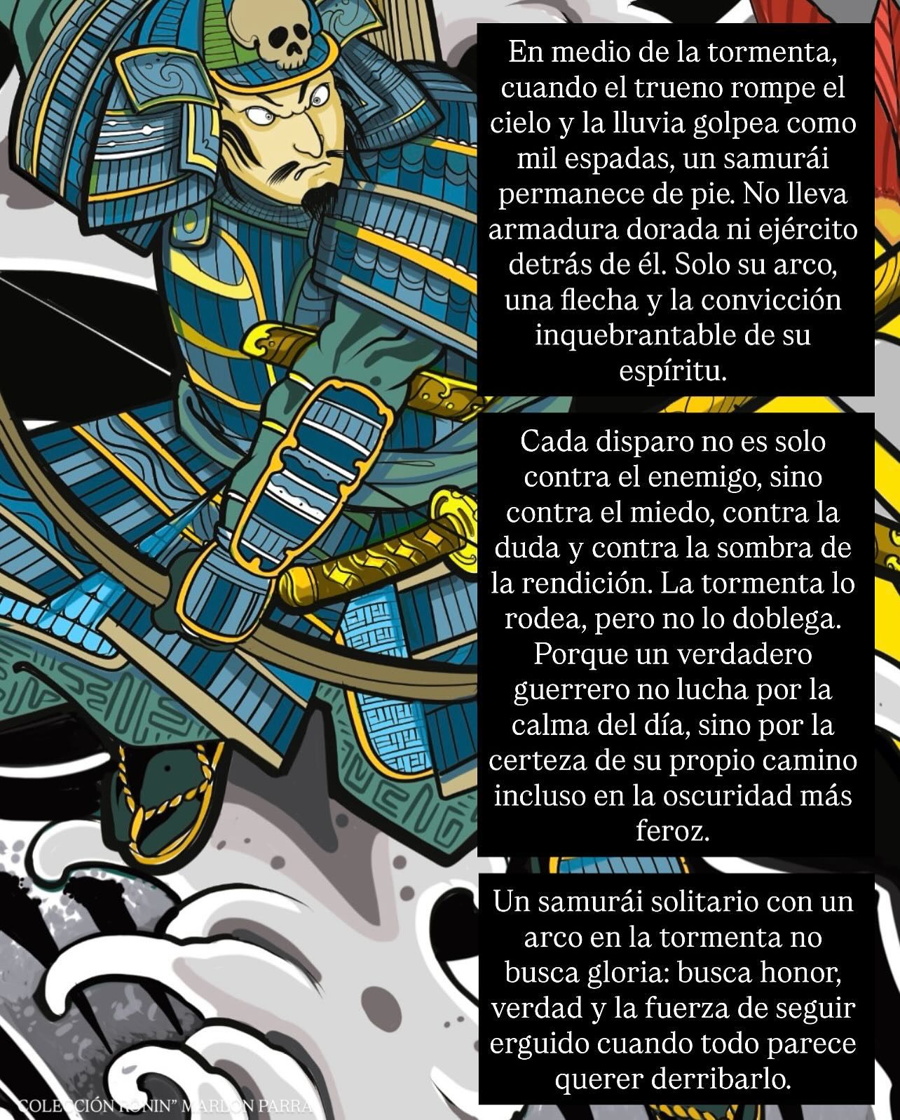En medio de la tormenta, cuando el trueno rompe el cielo y la lluvia golpea como mis espadas, un samurái permanece de pie. NO lleva armadura dorada ni ejercito detrás de él. Solo su arco, una flecha y la convicción inquebrantable de su espíritu.